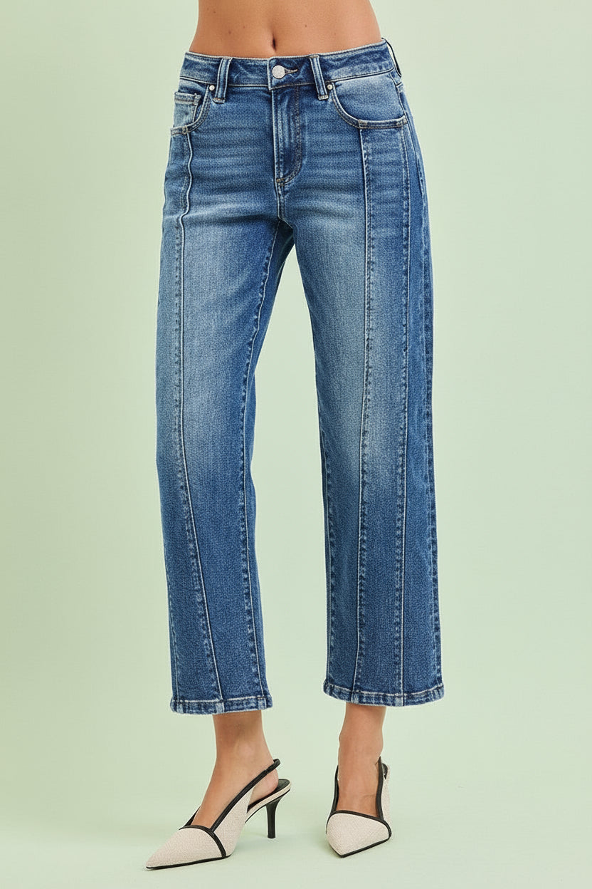 Mid Rise Crop Wide Front Seamed Jeans R06