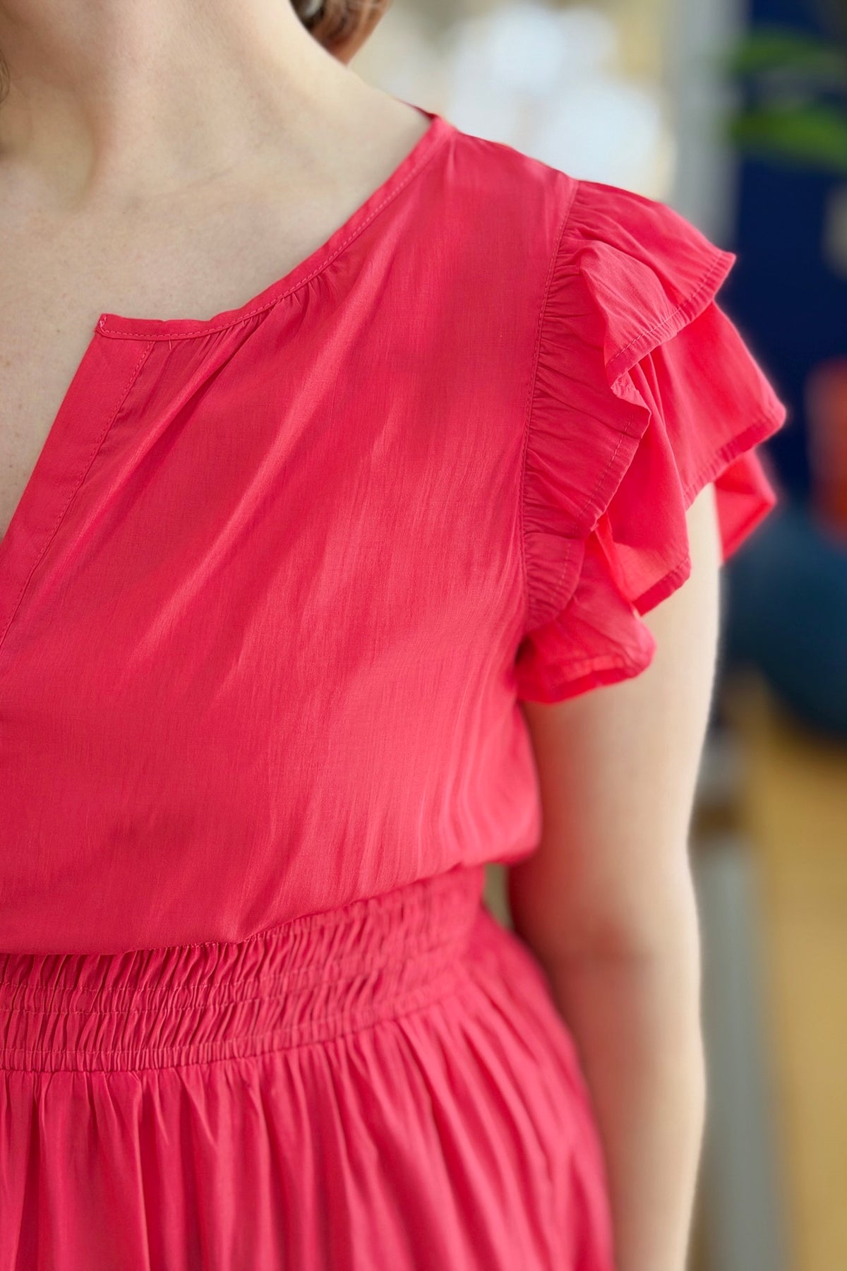 Midi Dress Smocked Waistband - Red
