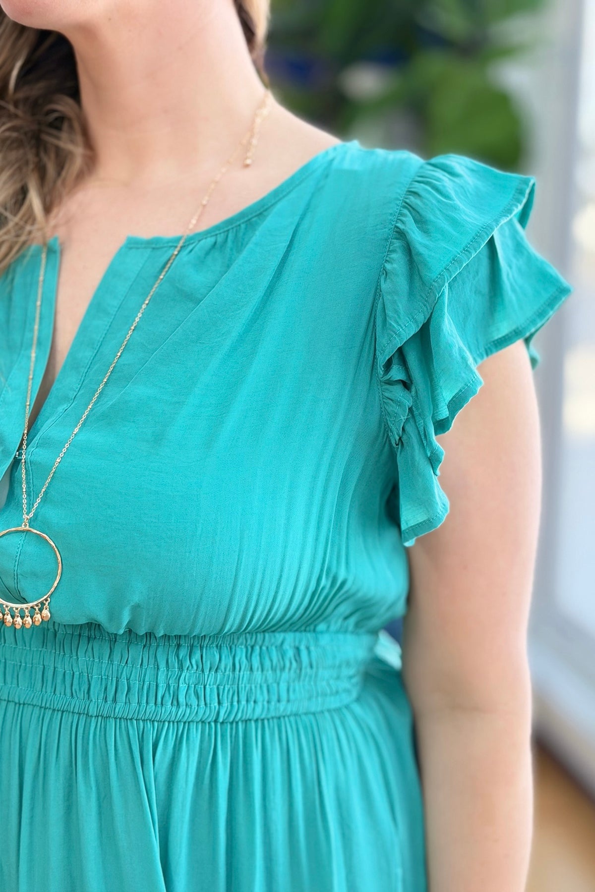 Midi Dress Smocked Waistband - Jade