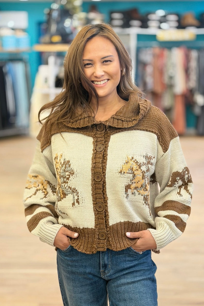 Cardigan With Horse Print - Mocha