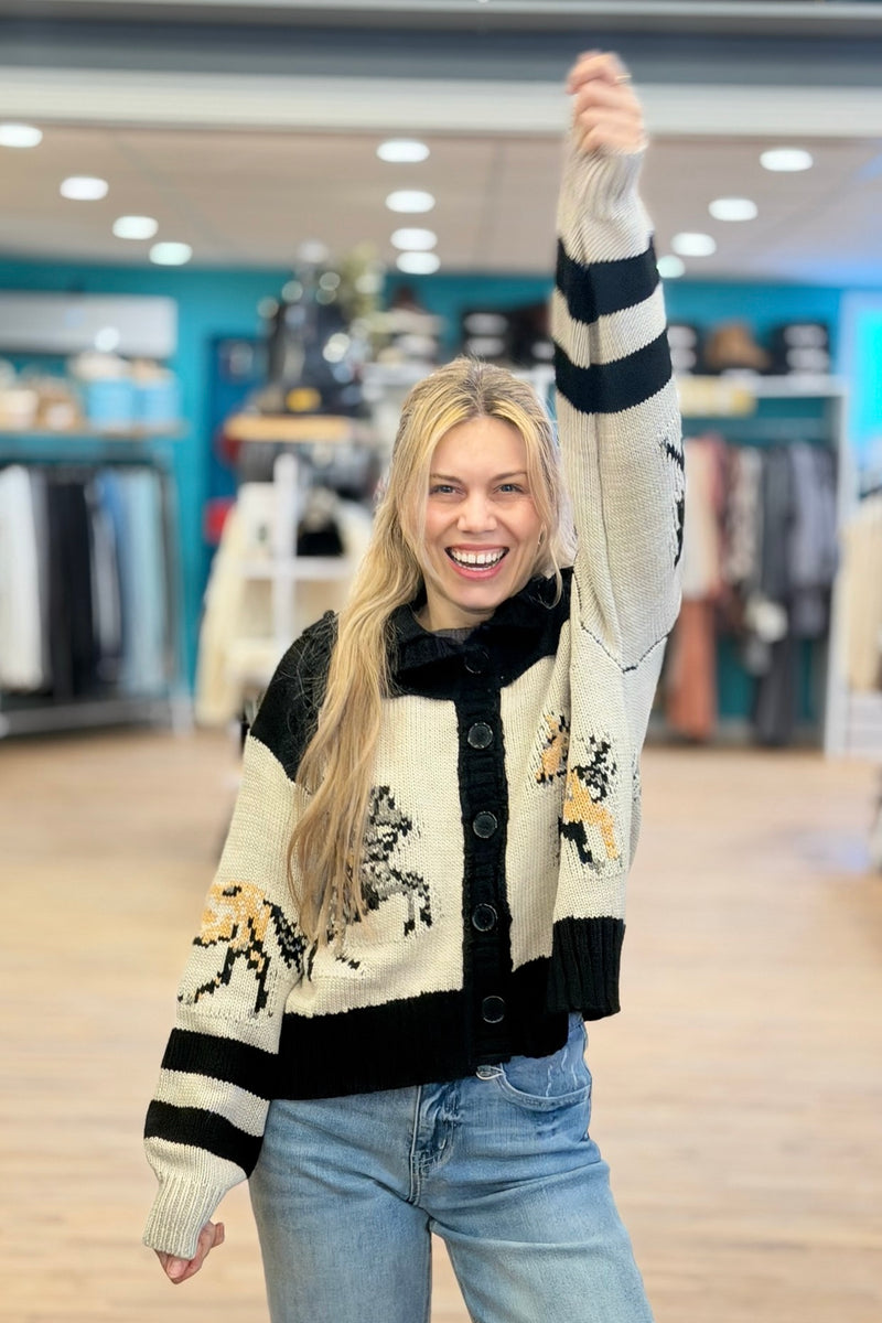 Cardigan With Horse Print - Black