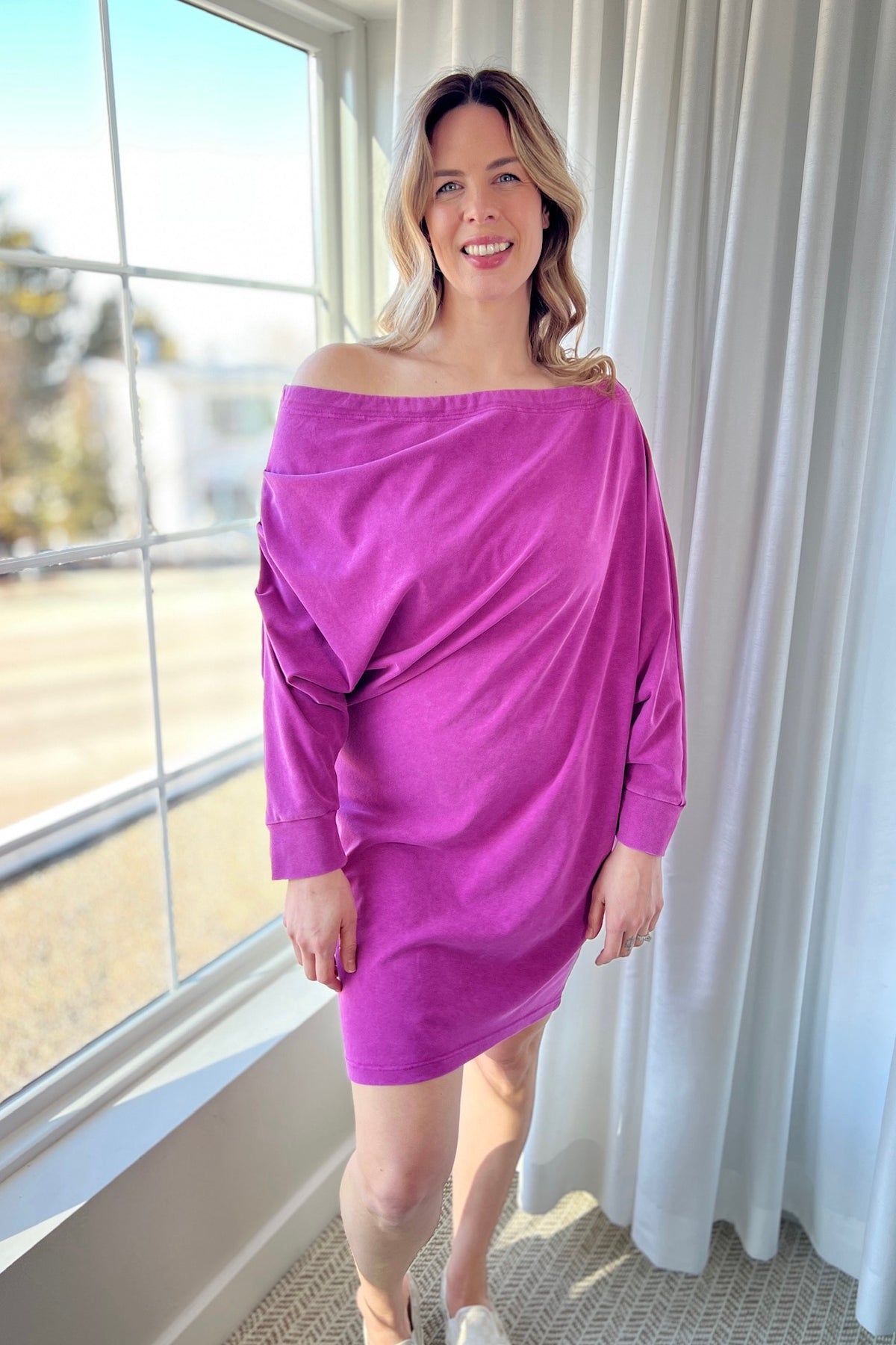 Off Shoulder Asymmetrical Tunic - Magenta