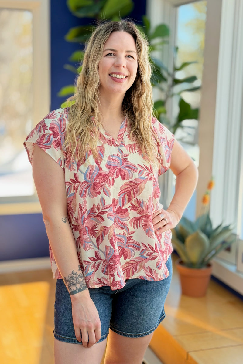 Printed Short Sleeve Top - Salmon