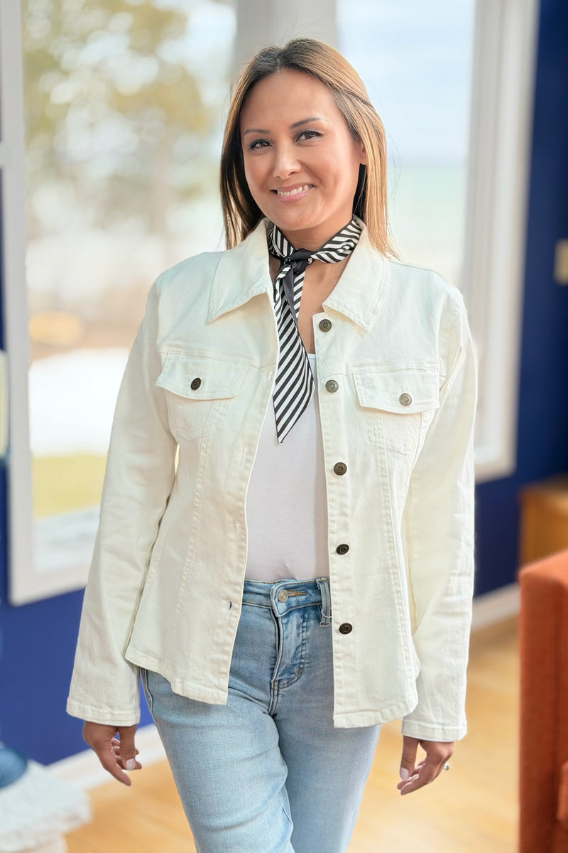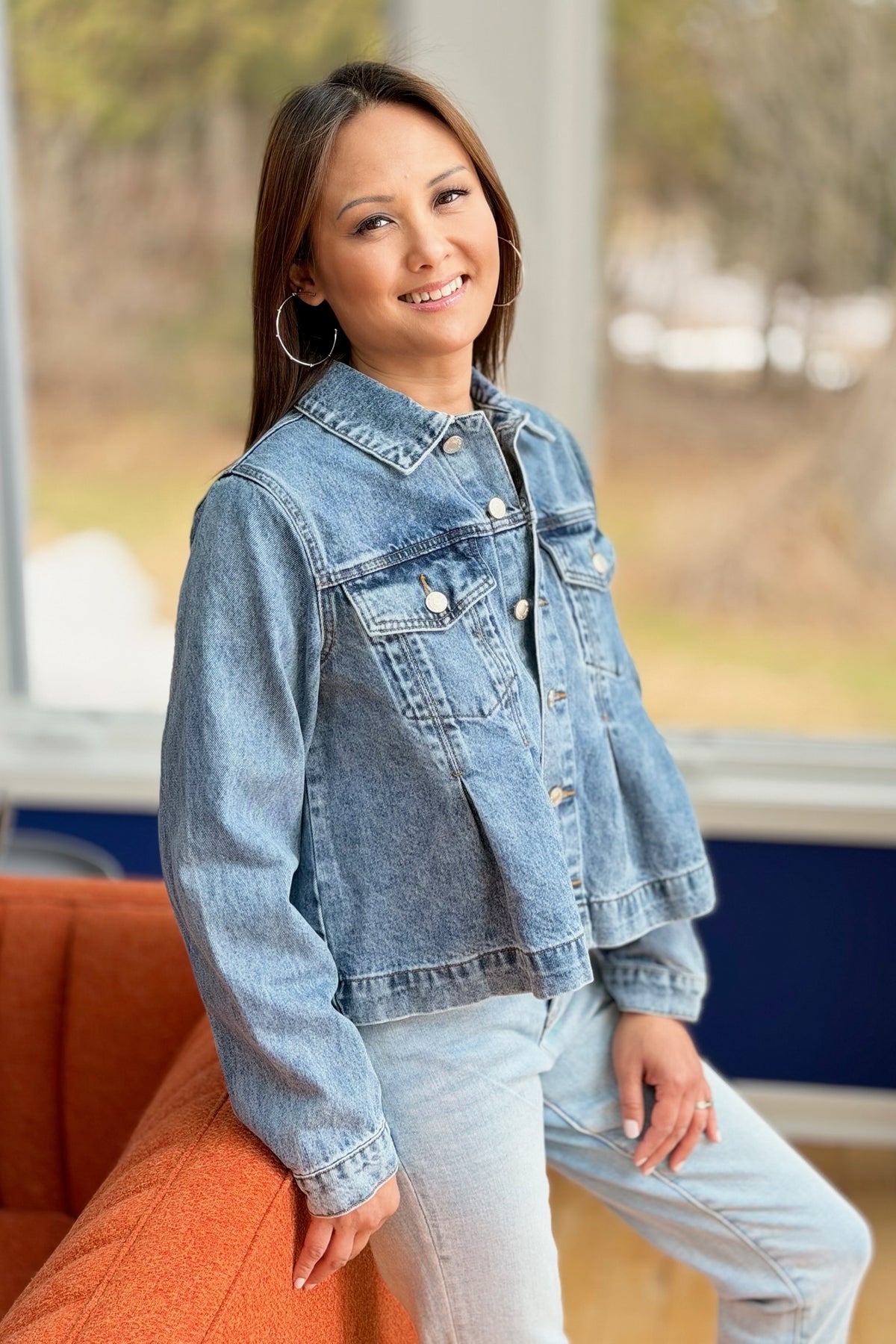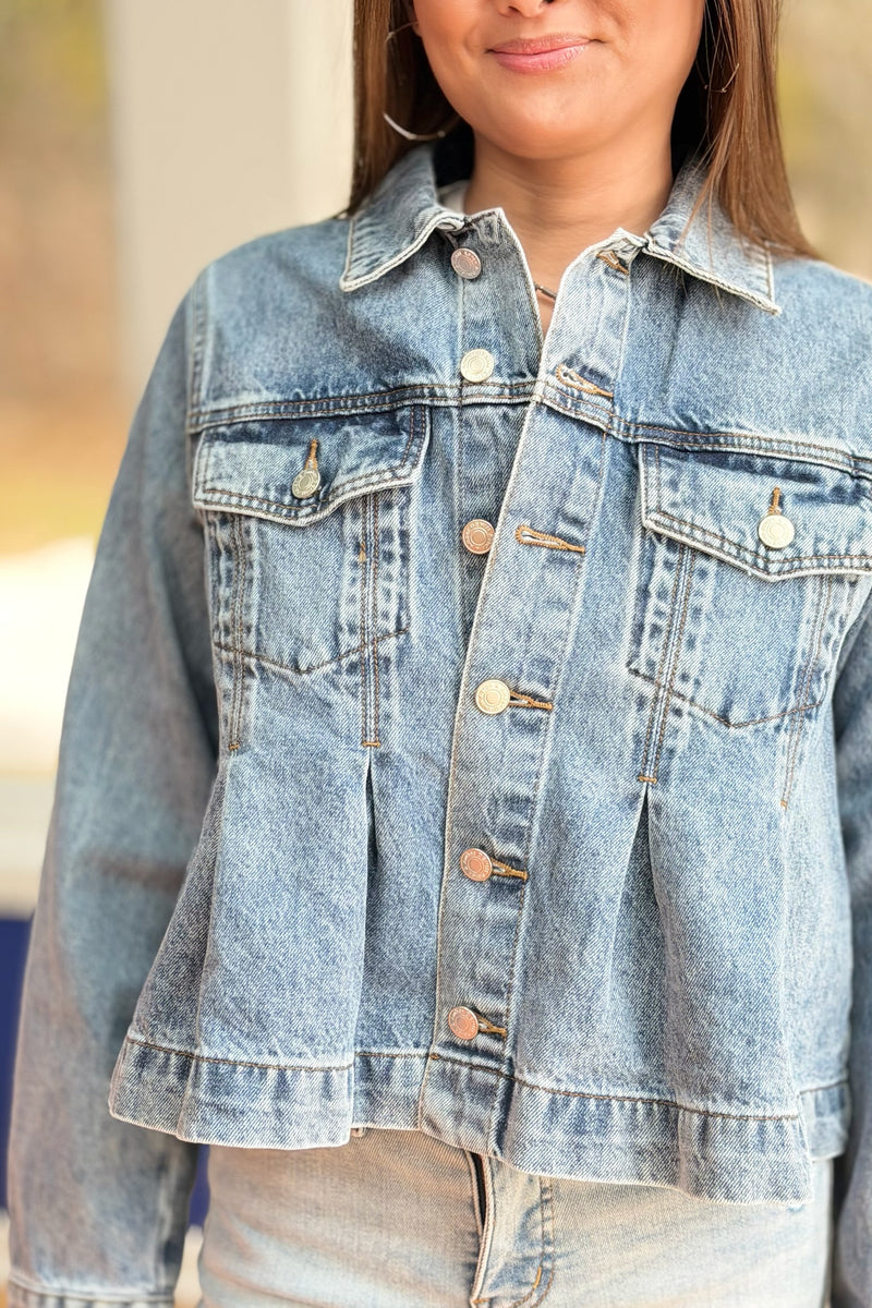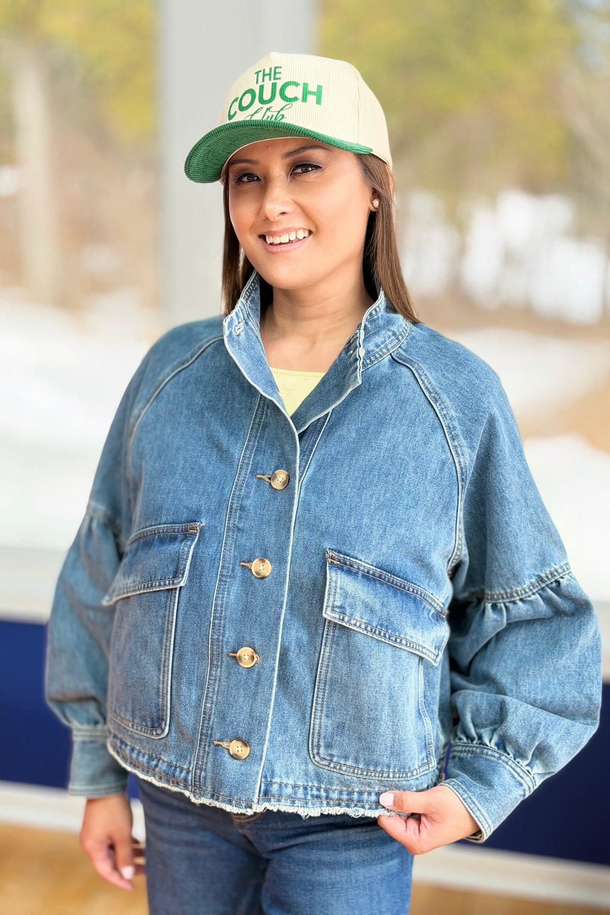 Balloon Sleeve Denim Jacket Drawstring Waist
