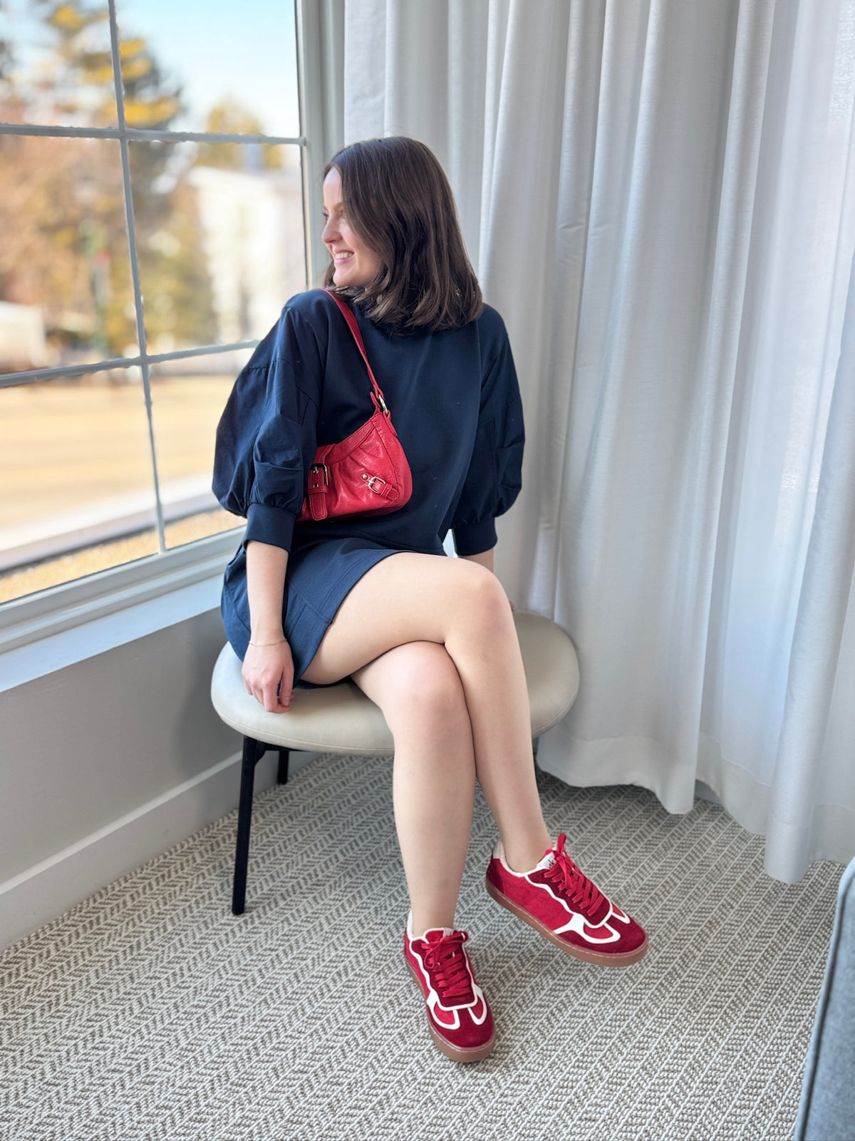 Puff Sleeve Sweatshirt Dress - Navy