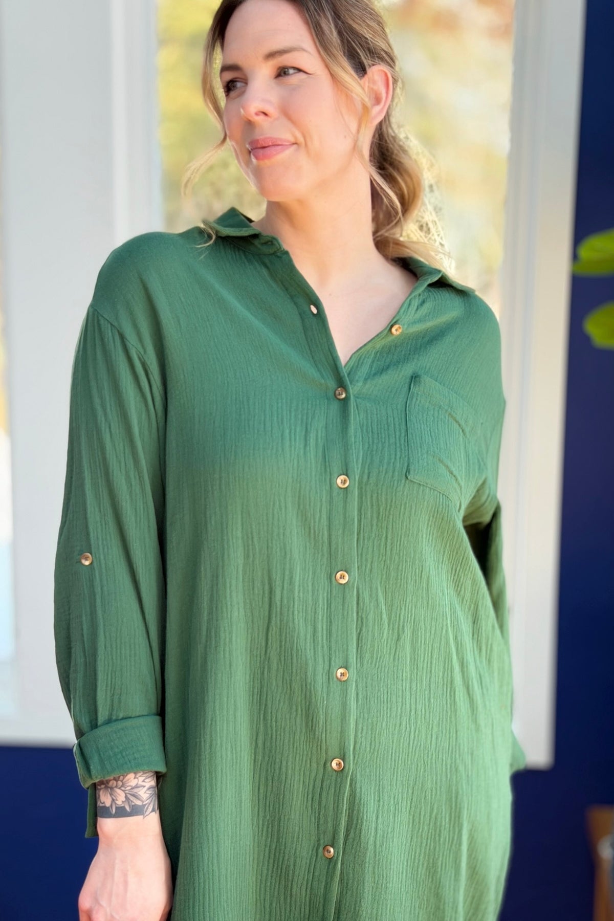 Long Sleeve Button Up Maxi Shirt Dress - Hunter