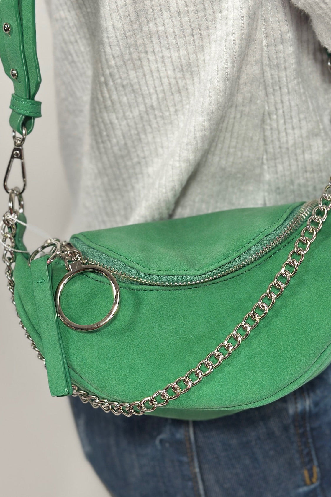 Add a pop of color to your outfit with this playful Crossbody Bag in vibrant emerald green. Its mini size and chain strap make it perfect for hands-free fun while holding your essentials securely. Whether you're heading out for a casual day or night on the town, this cute bag brings a splash of charm and convenience everywhere you go.