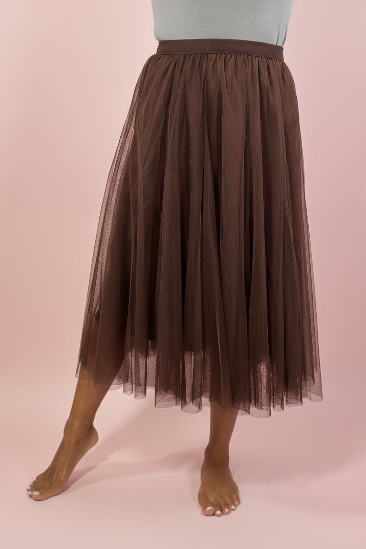 Mesh Tulle A-Line Skirt - Dark Coffee