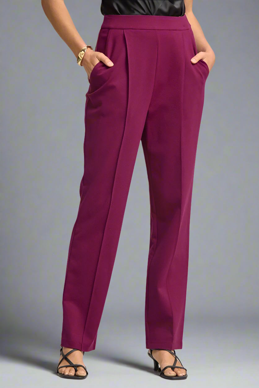 Slip into the Magic High Waist Relaxed Pants in Merlot and experience effortless style with a playful twist. These pull-on pants feature an elongating front seam that flatters your figure while the rich wine color adds a dash of bold sophistication. Perfectly relaxed yet striking, they’re your new go-to for comfort and confidence in one fun package.