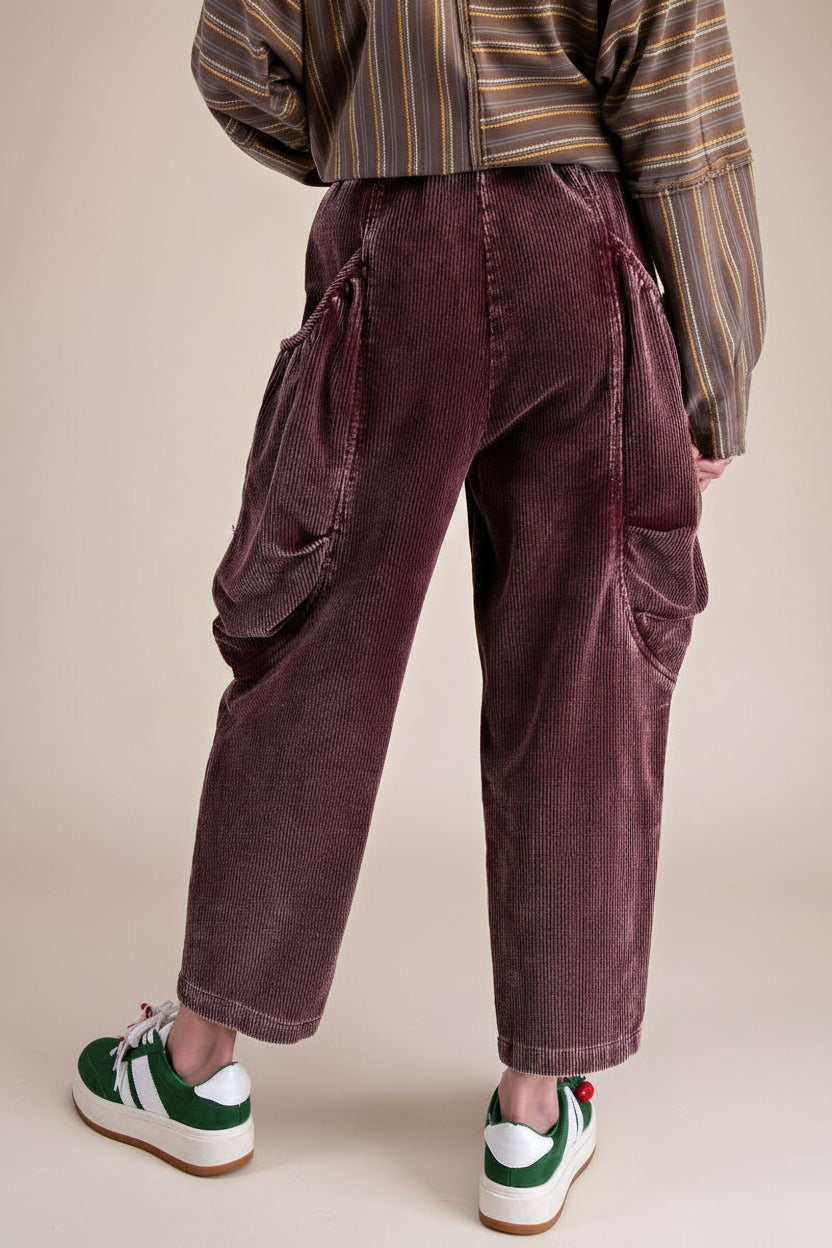 Washed Corduroy Barrel Pants - Mulberry
