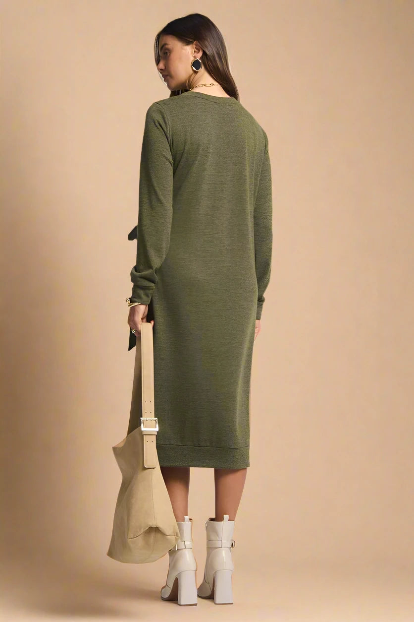 This comfy hacci knit tunic dress feels unbelievably soft and looks super cute! It’s the ideal mix of cozy and chic, featuring a playful side tie that snugs your waist perfectly while keeping the flowy, relaxed vibe. With long sleeves and a midi length that falls just below the knee, it’s your new go-to for effortless style and comfort.