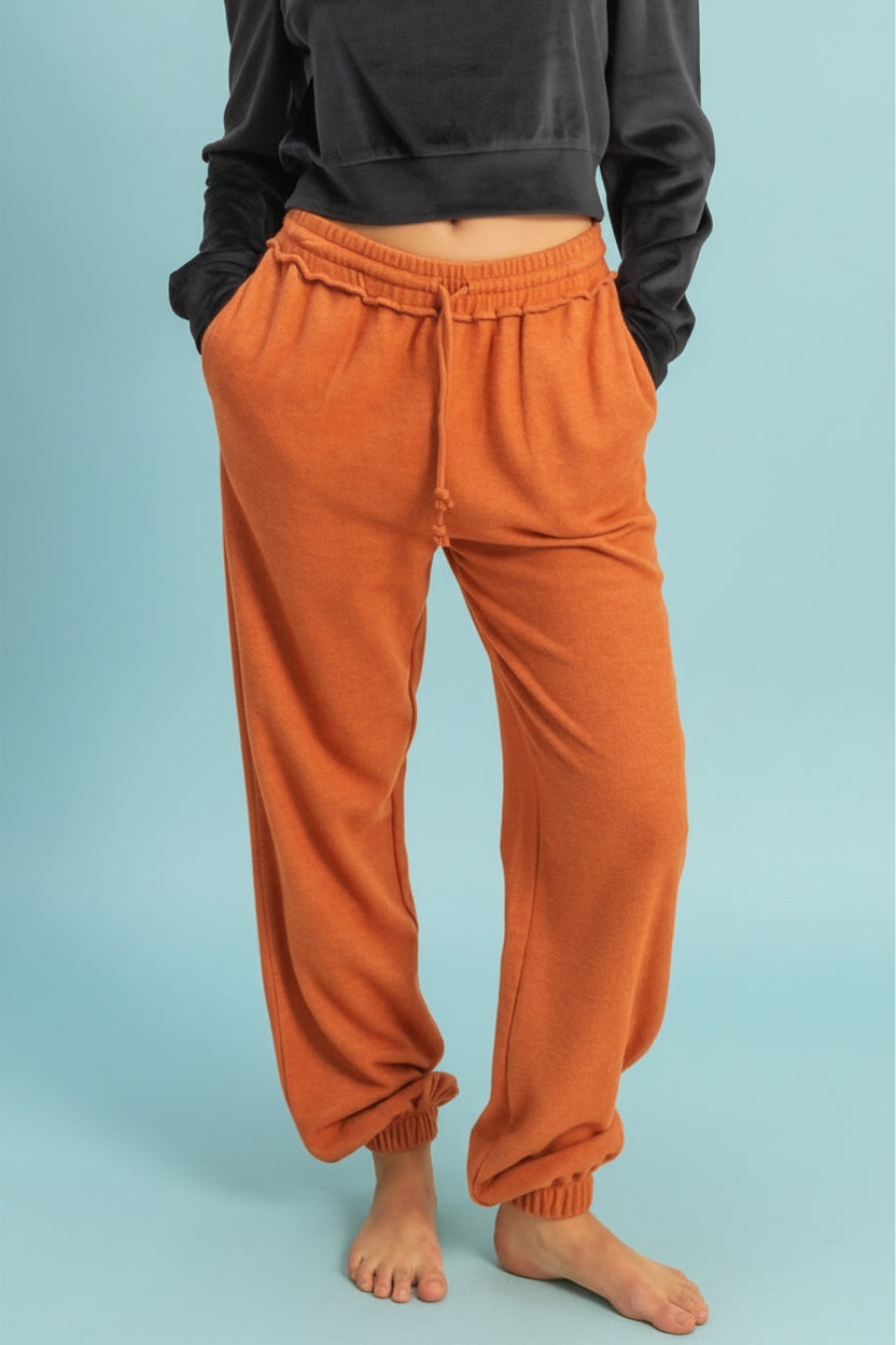 Redefine casual comfort with these stylish jogger pants. The reverse seam detailing adds an unexpected edge to your relaxed wardrobe. They comfy and casual, with a pop of orange color.