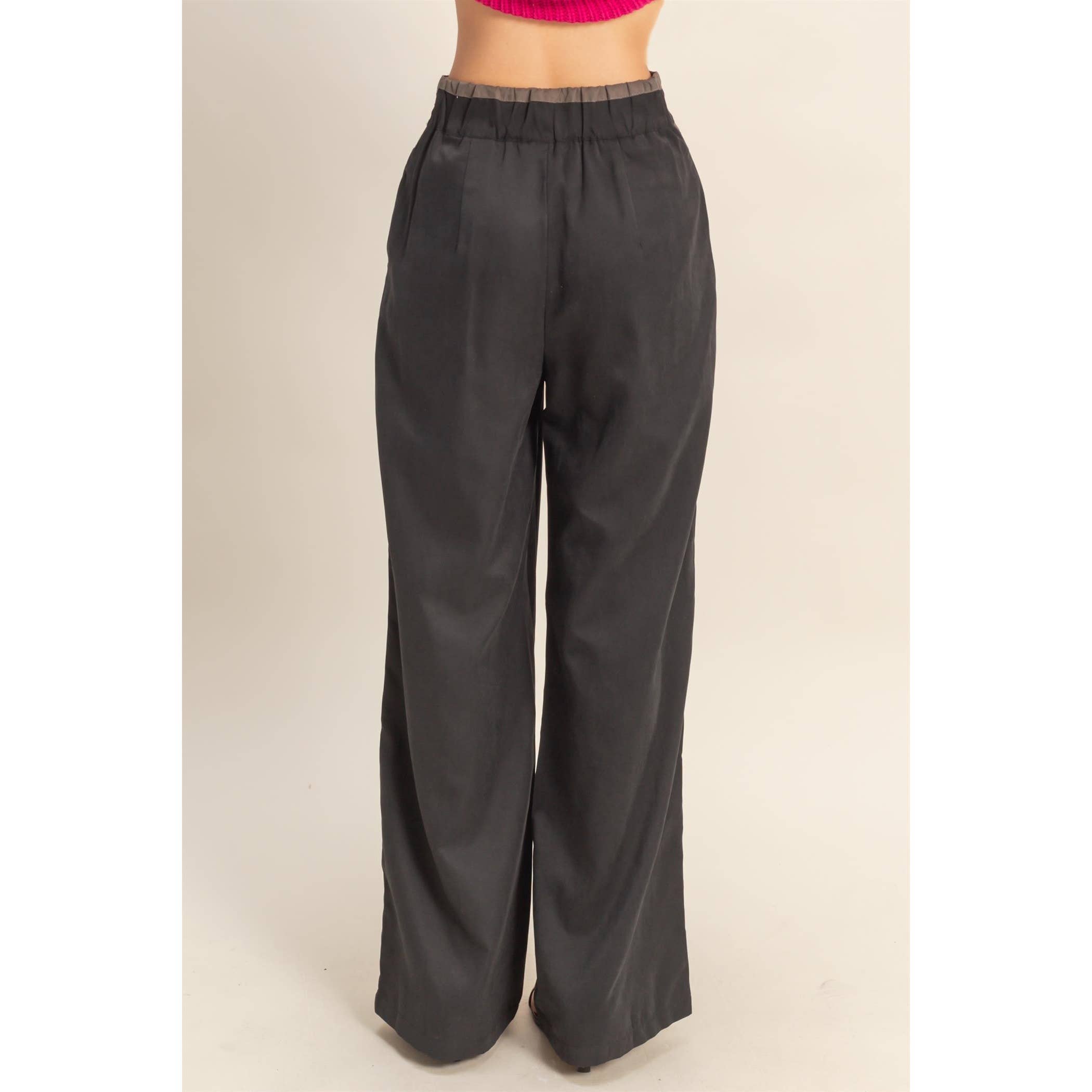 Embody the essence of sophistication and comfort with these tailored semi wide-leg trousers. Showcase a structured silhouette and clean lines that elevate any ensemble. Perfect for a seamless transition from a day at the office to an elegant evening out. Pair with a fitted blazer and heels for a polished look or opt for a cozy sweater and loafers for a more relaxed yet stylish vibe.
