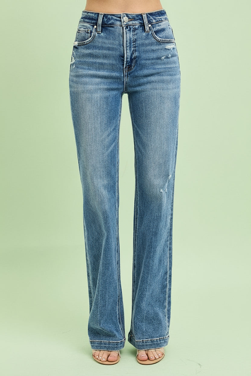 These tummy control jeans are your classic denim material with minimal stretch and a high waist. They are a flattering fit that will take you back to the good ole days.