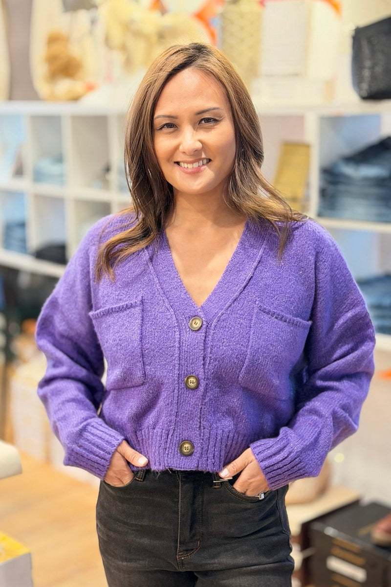 Drop Shoulder Cropped Cardigan Sweater - Wisteria