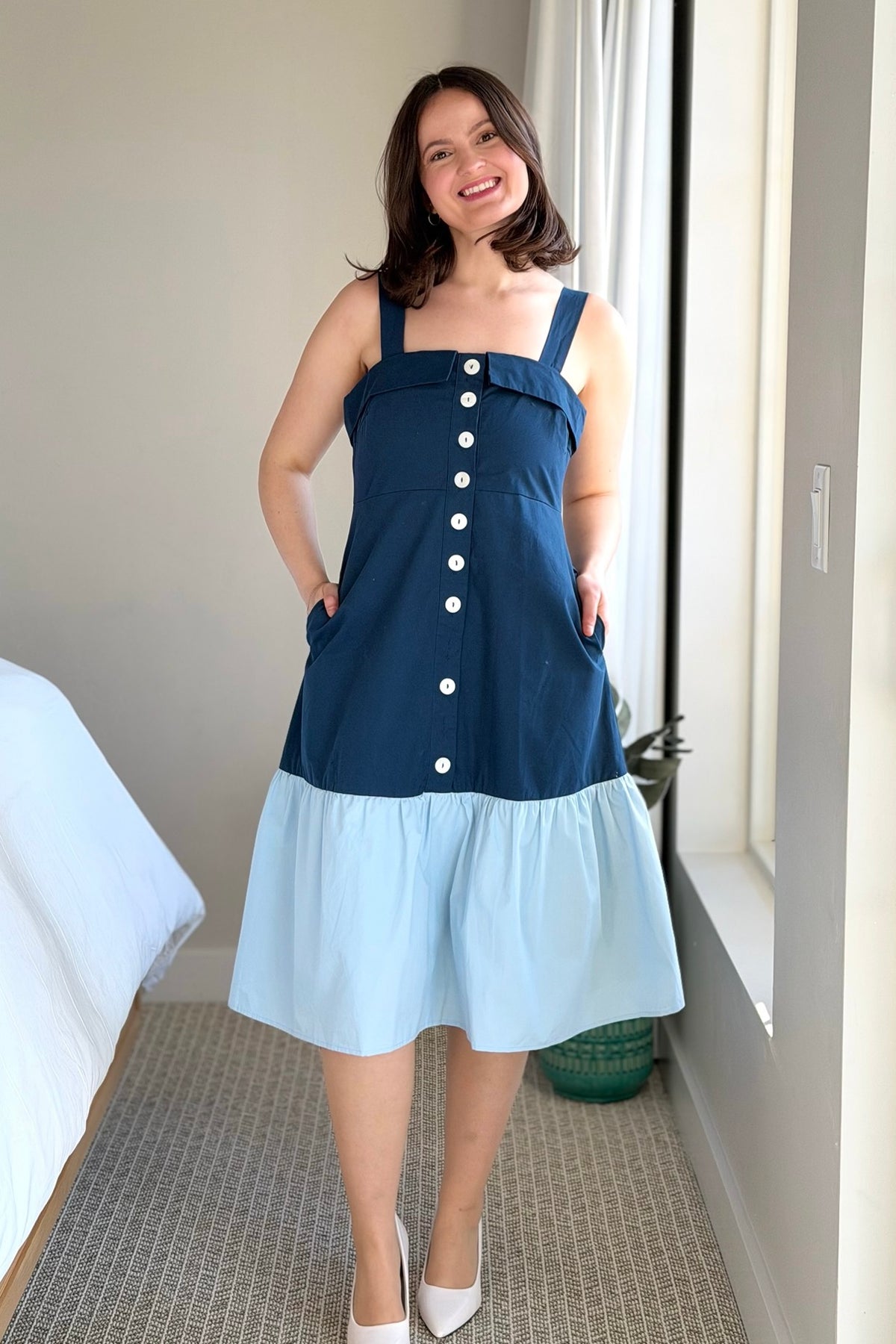 Drawstring Waist Long Sleeve Midi Dress - Deep Pond