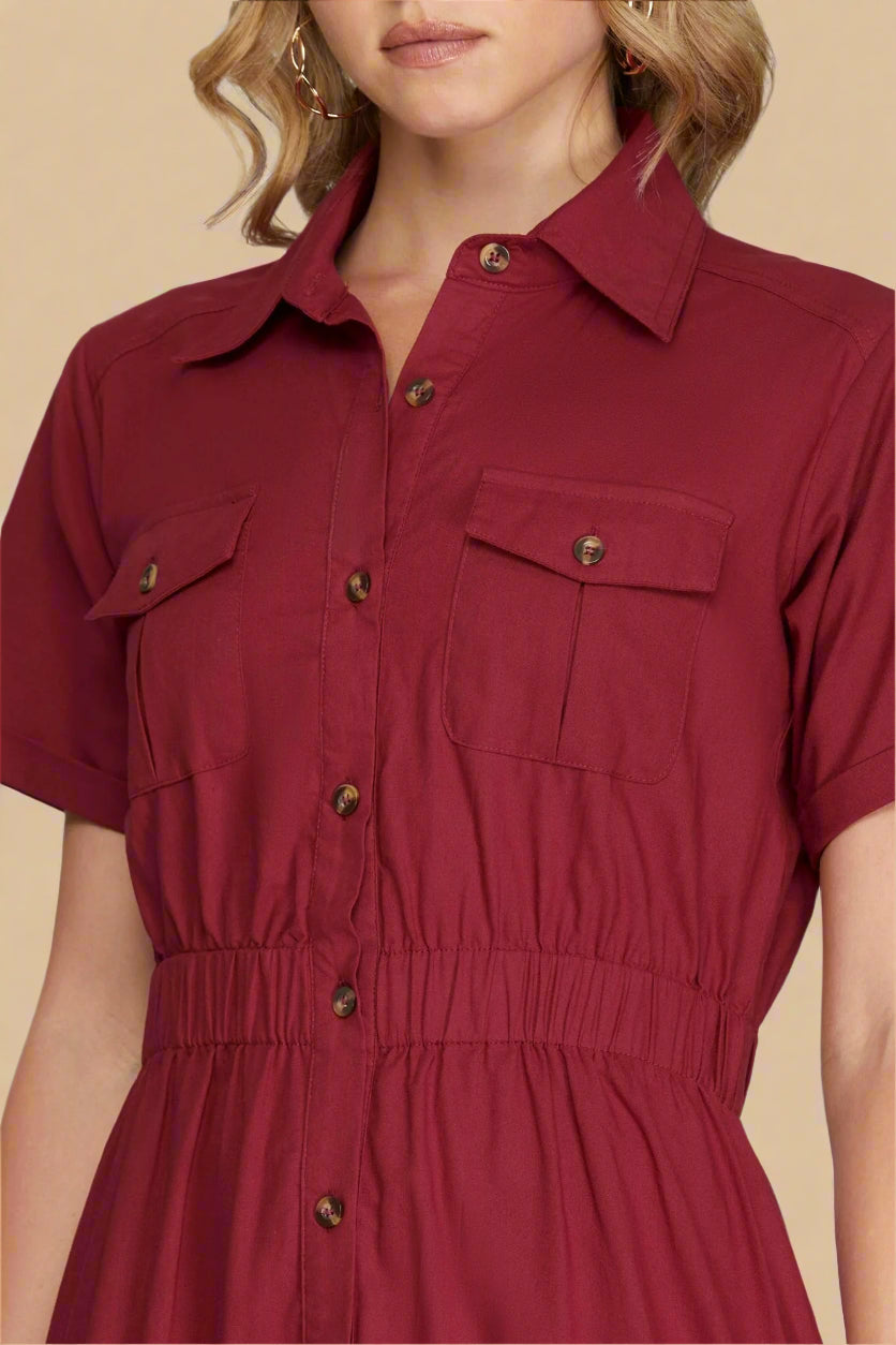 Tiered Button Down Maxi Dress - Berry
