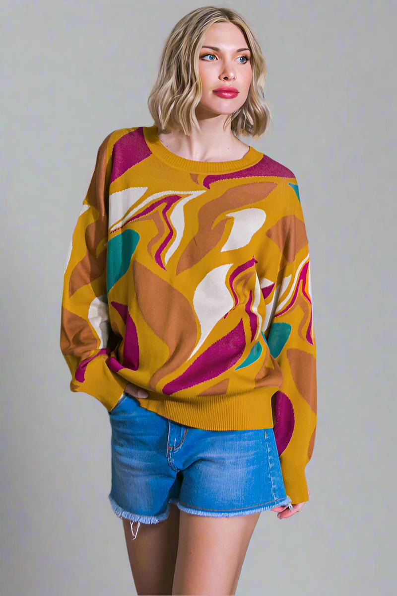 Graphic Sweater Top - Mustard