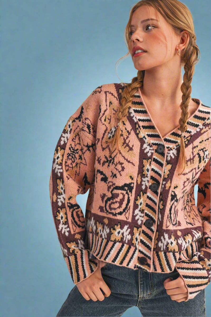 Paisley Floral Sherpa Hooded Jacket - Beige