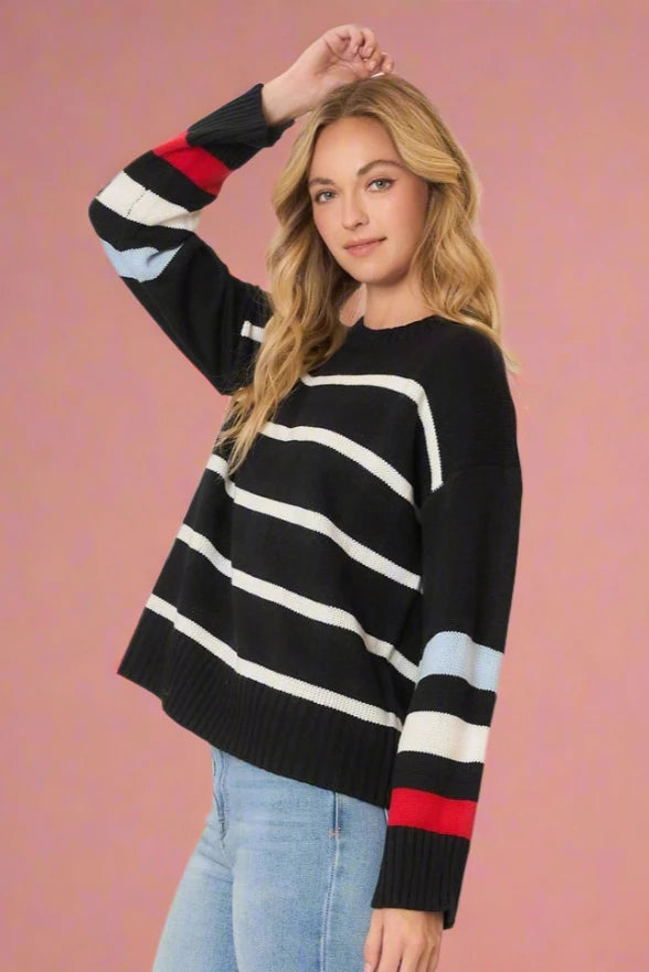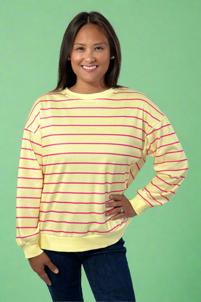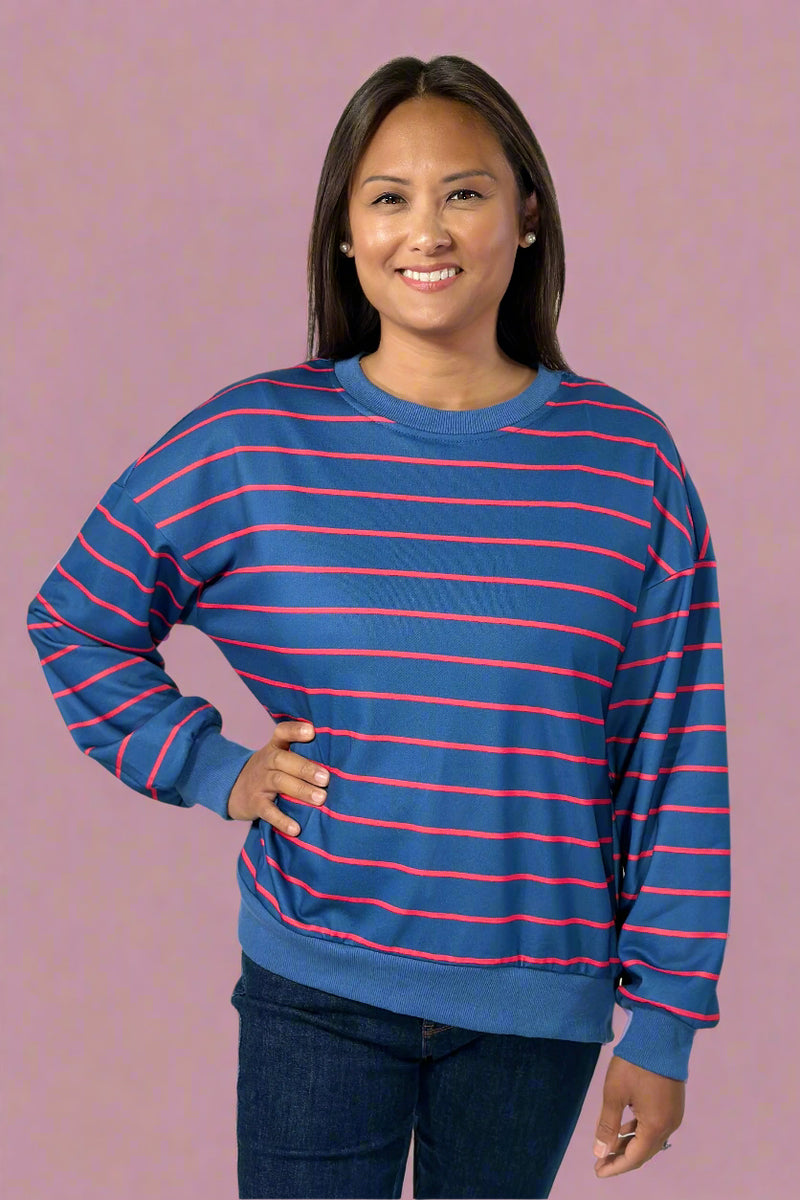 Stripe Ruffle Sleeve T-Shirt - Sky Blue