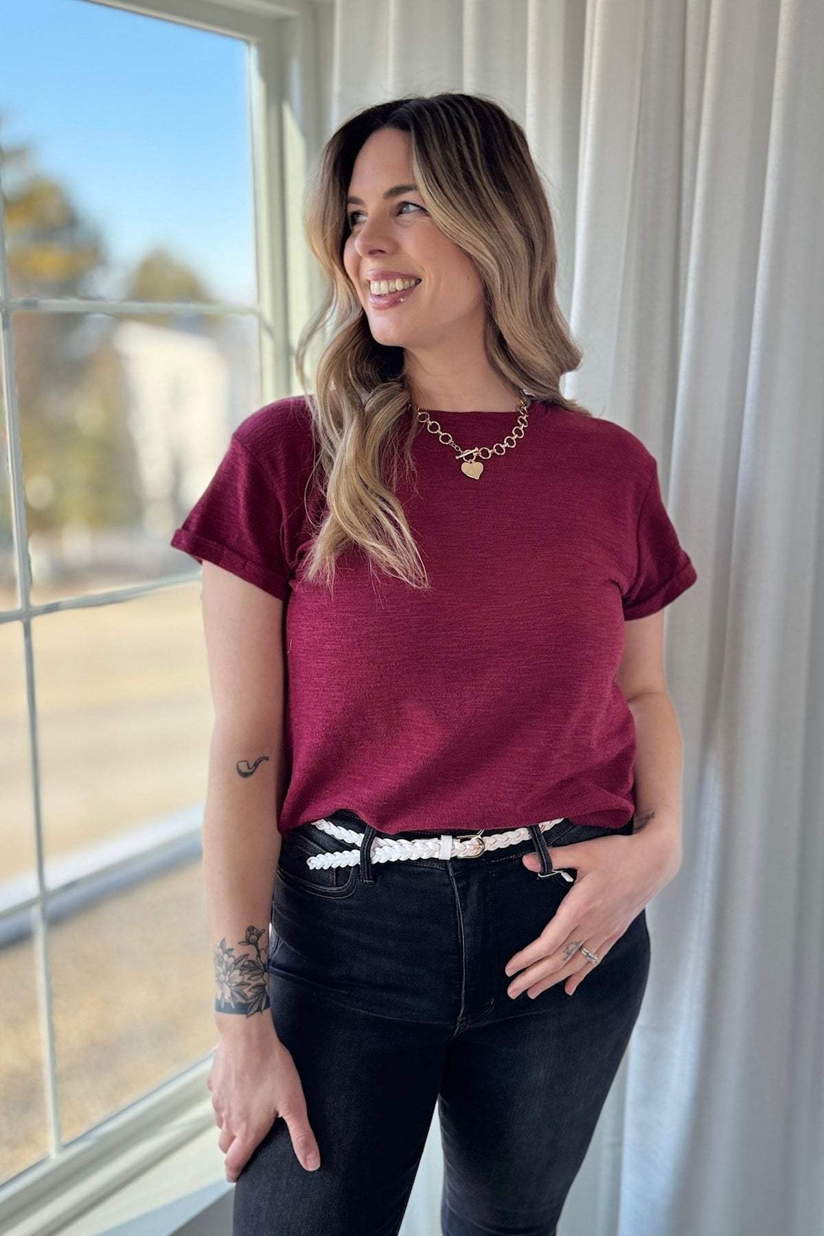 Double Ring Buckle Cinch Belt - Red