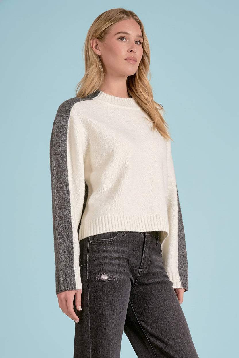 Color Block Crewneck Sweater - Grey White