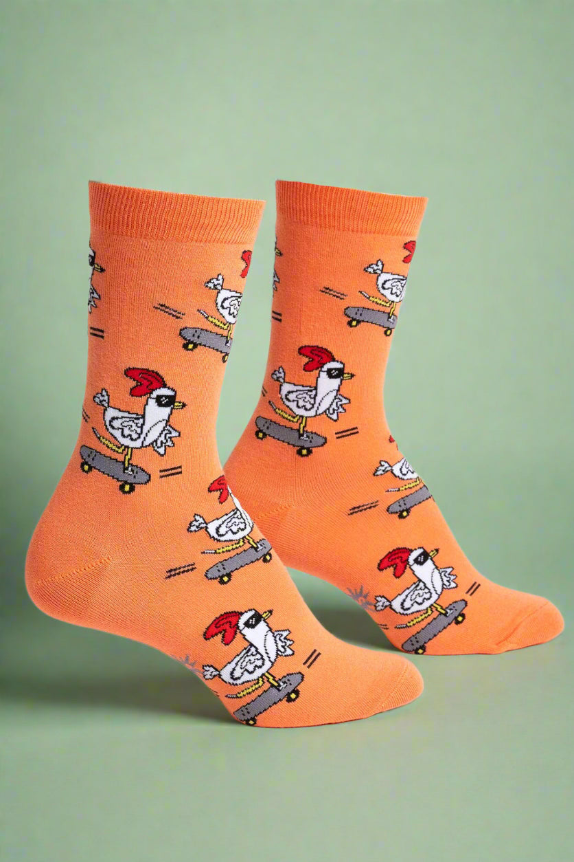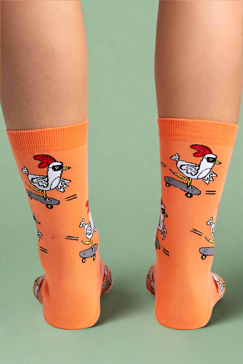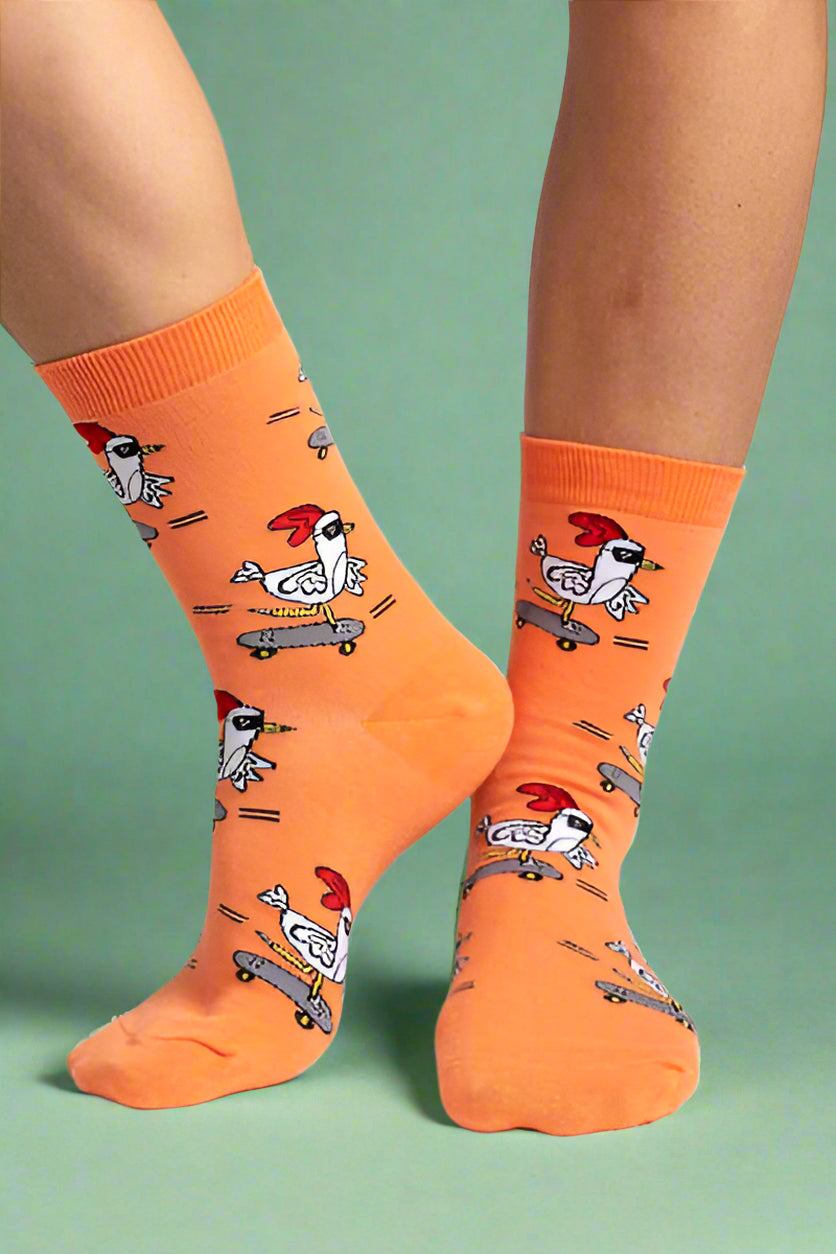 Step up your sock game with our cluckin' cool chicken on wheels! These socks will keep you rolling in style.