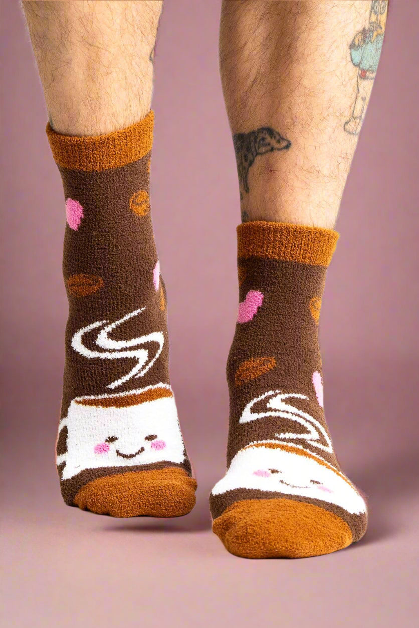 Caffeinate your cozy with our adorable coffee-themed slipper socks. Perfect for those who love their brew and comfort!