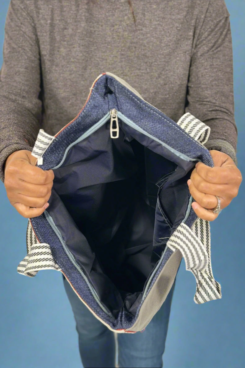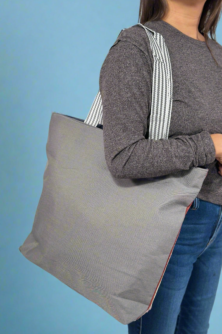 Add a dash of vintage charm to your everyday look with this roomy purple canvas tote. Featuring playful embroidery and woven striped straps, it’s designed to stand out while keeping your essentials secure with a zippered top and a handy inside pocket. Fully lined for durability, this tote is your perfect companion for daily adventures with a nostalgic twist.