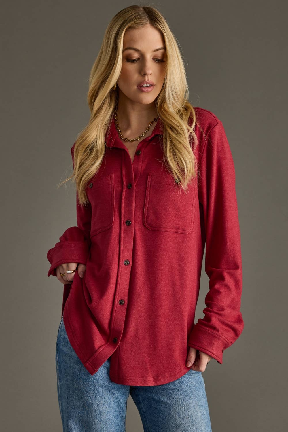 Heather Red Super Soft Button Up