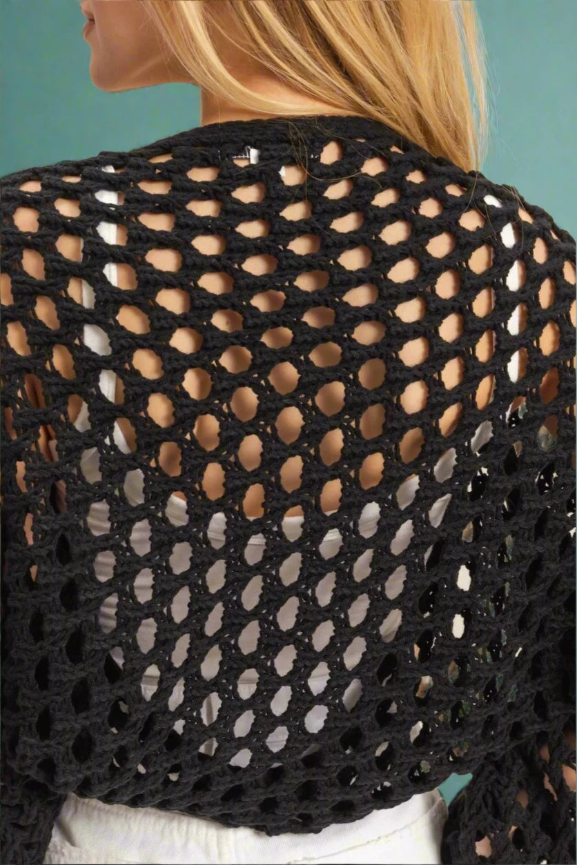 This playful cropped cardigan features an open stitch design and long sleeves, making it the perfect light layer to highlight your favorite tops. Its open front adds a flirty vibe, letting your outfit shine while keeping you cozy when you need just a little extra coverage.