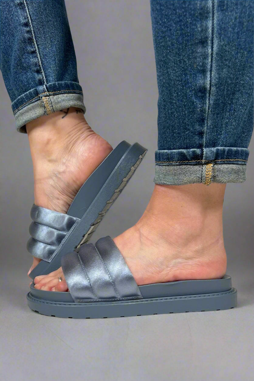Add a splash of style to your summer wardrobe with these comfy slide sandals! Featuring a thick, cushioned strap and a sunken footbed with extra padding at the ball and heel, they’re perfect for all-day wear.