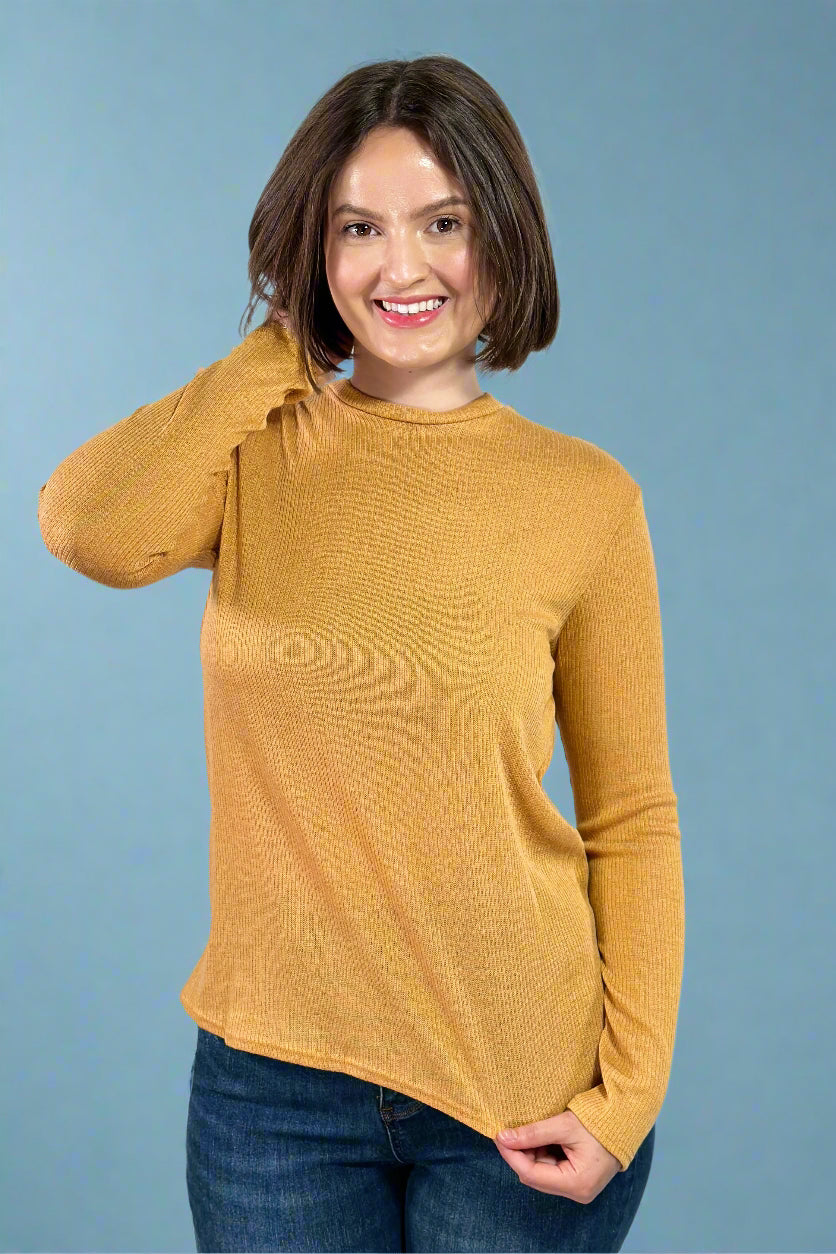Get ready to feel super comfy in this ribbed, relaxed long sleeve tee in Dijon yellow. Perfect for layering up or wearing on its own, it keeps you snug and stylish from morning till night.