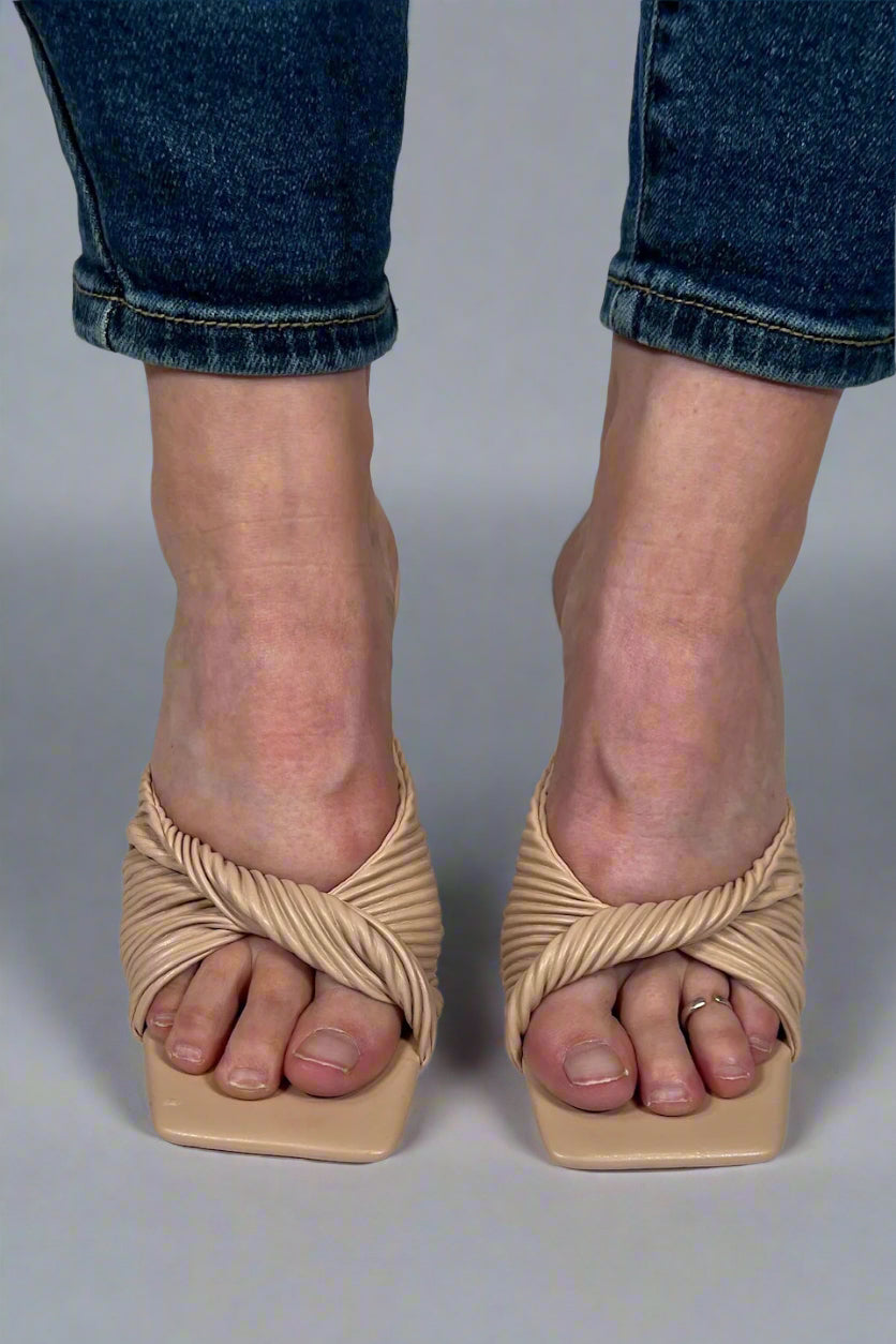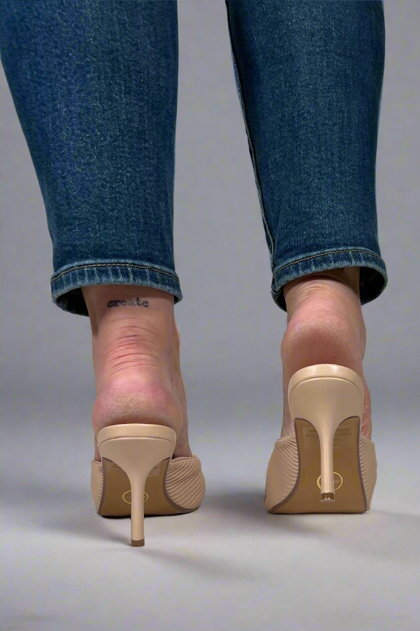 Classy and fun little party heel. This simple heel has a pleated design at the vamp made of vegan leather. A pump heel with a 4 mm Tru Comfort Foam™ footbed completes this stylish but comfortable design.